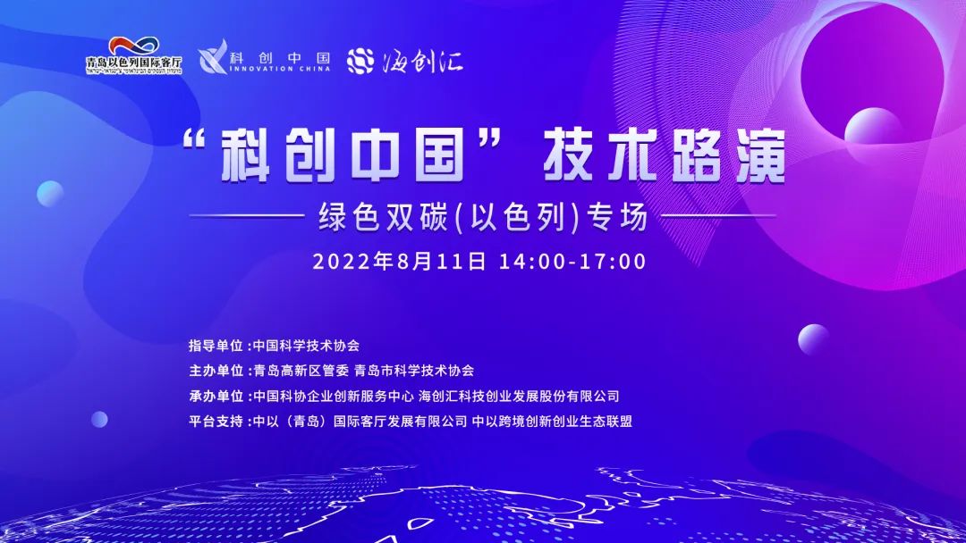 8月11日,“科创中国”技术路演中以专场成功举办。本期活动由中国科学技术协会指导,青岛高新区管委、青岛市科学技术协会主办,中国科协企业创新服务中心、海创汇科技创业发展股份有限公司联合承办,由中以(青岛)国际客厅发展有限公司中以跨境创新创业生态联盟支持。路演聚焦双碳产业发展需求和中以跨境融合机遇,采用线上+线下相结合的形式,汇集11个领域内优秀项目通过路演展示推介,并邀请技术点评专家、投资界人士“云端汇聚”,共探企业创新发展新路径。路演吸引上万人通过“科创中国”、科技工作者之家、海创汇云、凤凰网等平台观看路演直播。