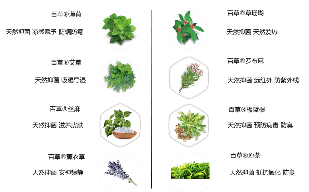 依托公司旗下的“百草系列专利纤维”产品,致力于开发“百草植物功能纤维”纱线创新应用于各类面料、纺织成品,研发植物天然功能的各类面料和被芯填充物,推动替代化学功能面料和絮片。从特定的天然中药植物中萃取其有效成份,通过专利技术在纺丝时融入萃取的植物有效成份,将植物的各种药理功效和特有的各种体感赋予纤维素纤维,成为植物功能纤维的经典代表,被誉为“21世纪的大健康纤维”,顺应了国内中产阶层对天然健康纺织品的需求趋势。