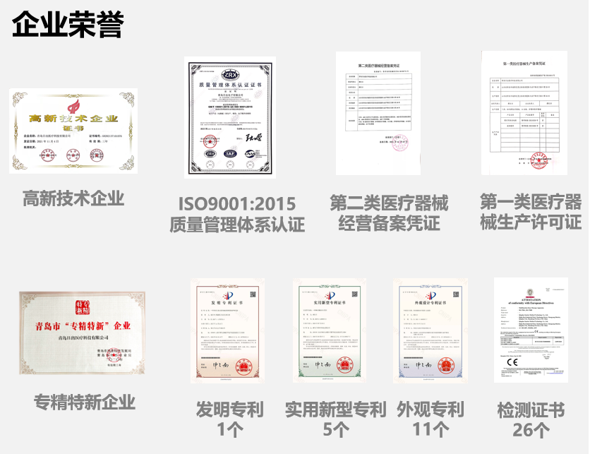 公司自成立以来,不断吸纳技术人员充实研发团队,不断研发生产,持续攻克技术难关,攀越科技高峰,并且在家用理疗领域取得多项突破,具备从PCB开发到成品生产检测的全套技术实力。历经多年的生产研发,获得国家高新技术企业及青岛市“专精特新”企业称号、17项自主研发国家发明专利、1项国家级发明专利、5项国家级实用新型专利、11项外观专利。