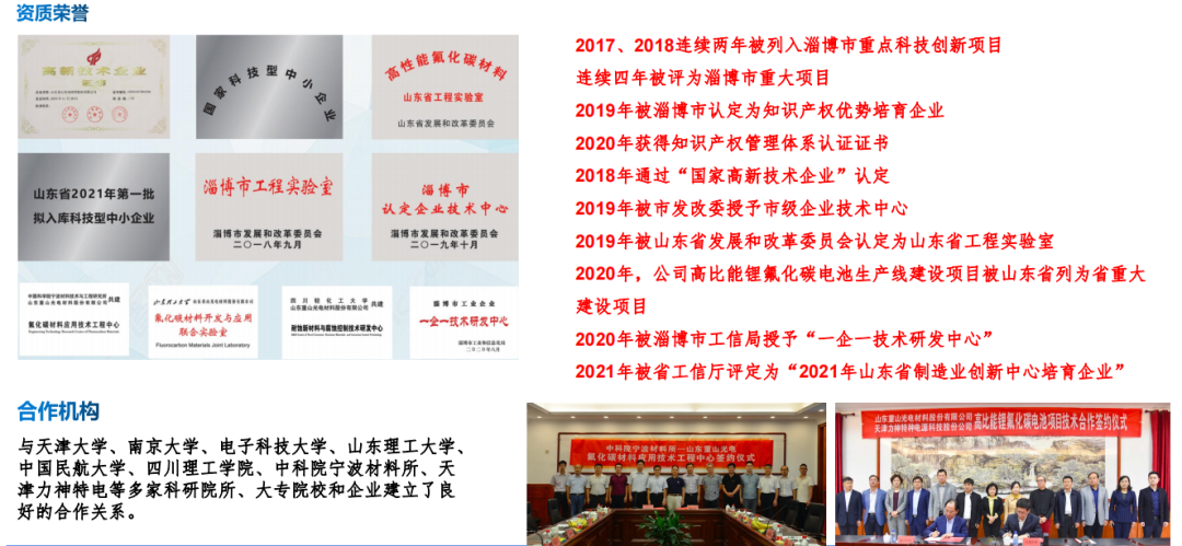 2020年,公司高比能锂氟化碳电池生产线建设项目被山东省列为省重大建设项目